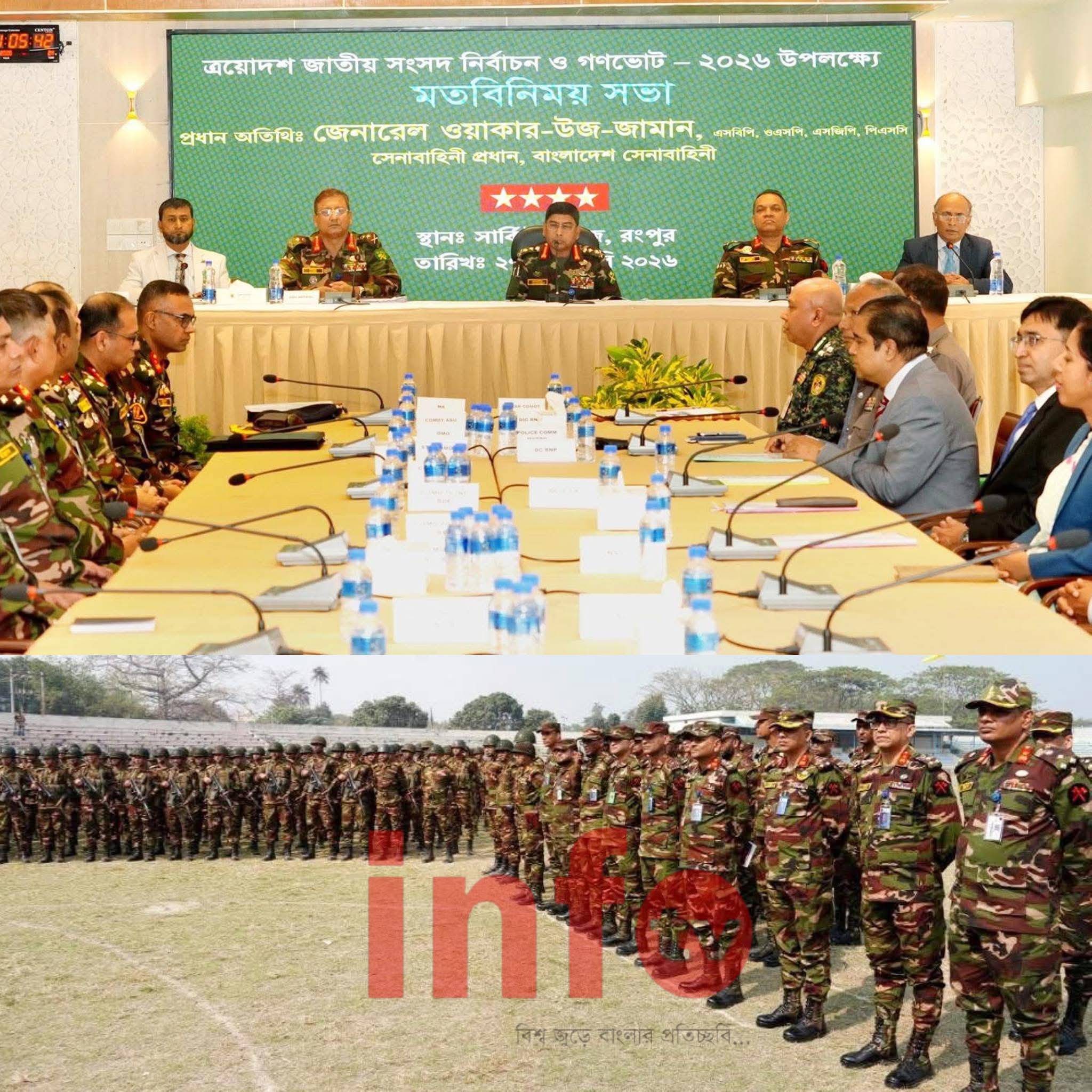 ত্রয়োদশ জাতীয় সংসদ নির্বাচন ও গণভোেট- ২০২৬ উপলক্ষ্যে সেনাবাহিনী প্রধানের রংপুর ও রাজশাহী পরিদর্শন ও মতবিনিময় সভা